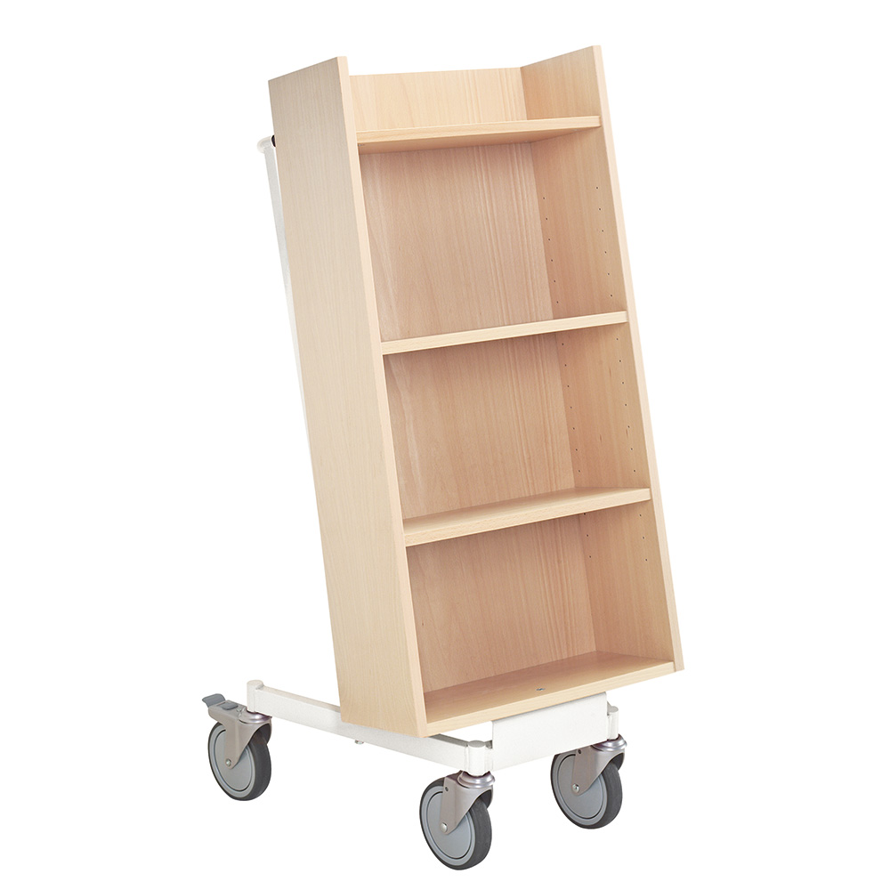 Bogvognens hældning sikrer stabil opbevaring og giver et godt overblik over de bøger, du skal håndtere.