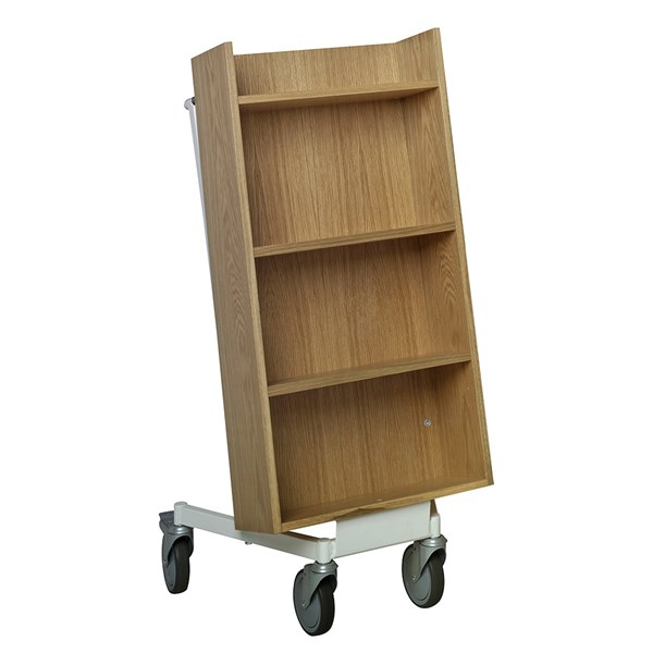 Bogvognens hældning sikrer stabil opbevaring og giver et godt overblik over de bøger, du skal håndtere.