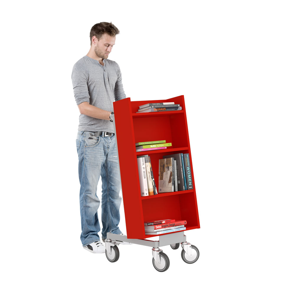 Bogvognens hældning sikrer stabil opbevaring og giver et godt overblik over de bøger, du skal håndtere.