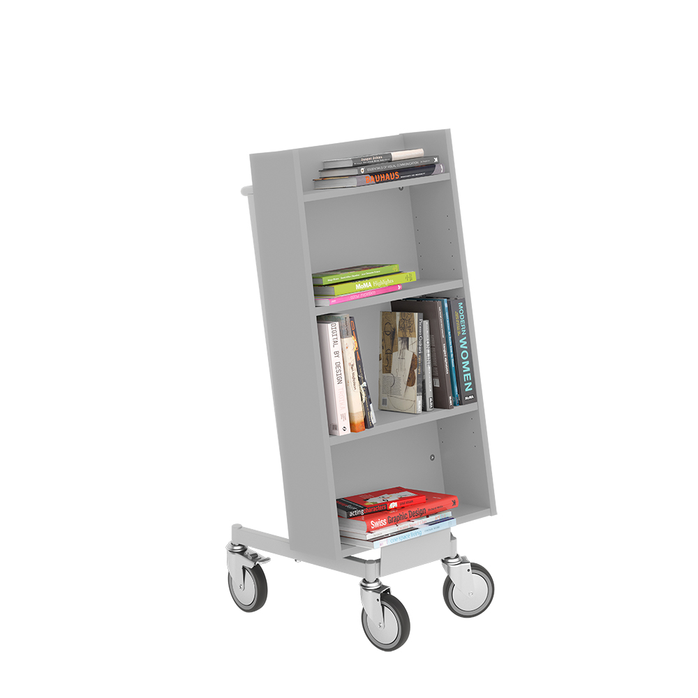 Bogvognens hældning sikrer stabil opbevaring og giver et godt overblik over de bøger, du skal håndtere.