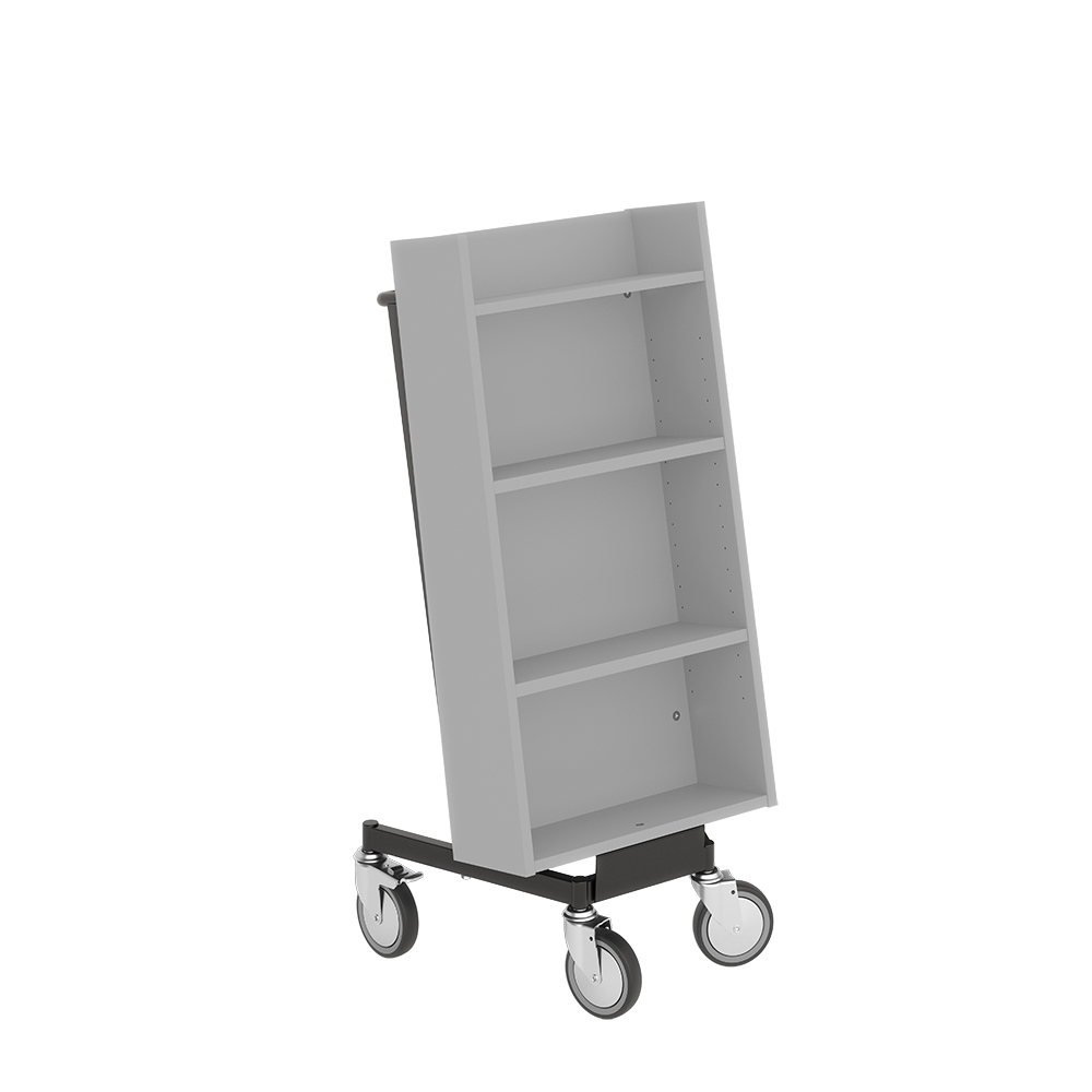Bogvognens hældning sikrer stabil opbevaring og giver et godt overblik over de bøger, du skal håndtere.