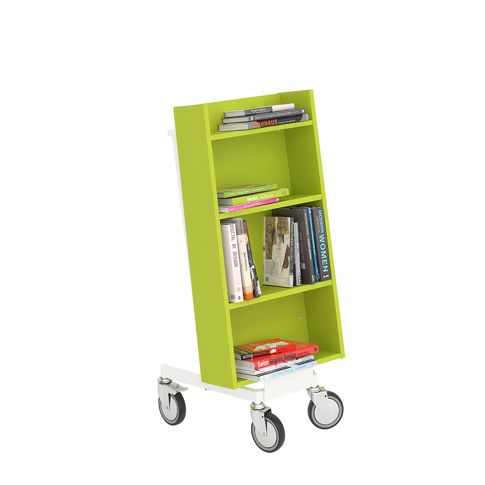 Bogvognens hældning sikrer stabil opbevaring og giver et godt overblik over de bøger, du skal håndtere.