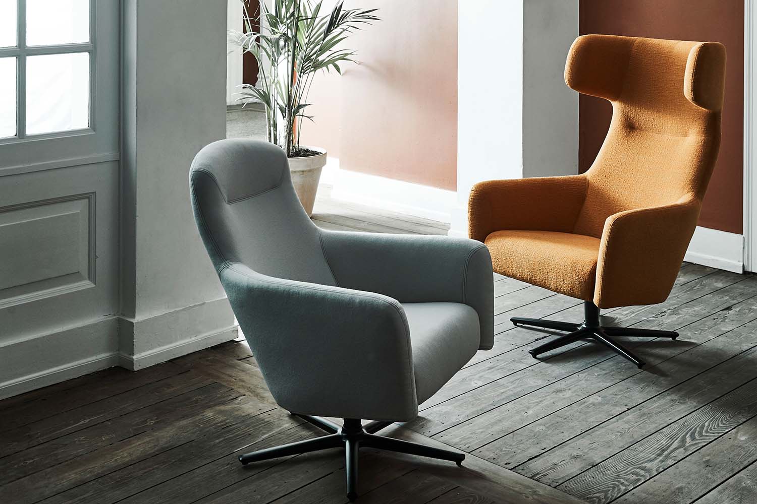 Som navnet antyder bringer lænestolen associationer til varme og komfort. Stolen fås med høj eller lav ryg samt med faste ben eller som drejestol.