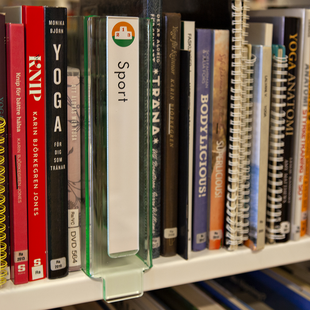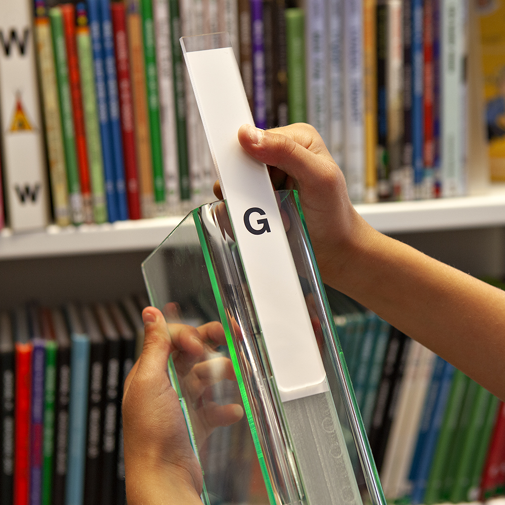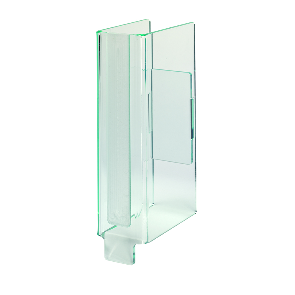 Etikettebeskyttelse i klar akryl er integreret i skillestøtten.