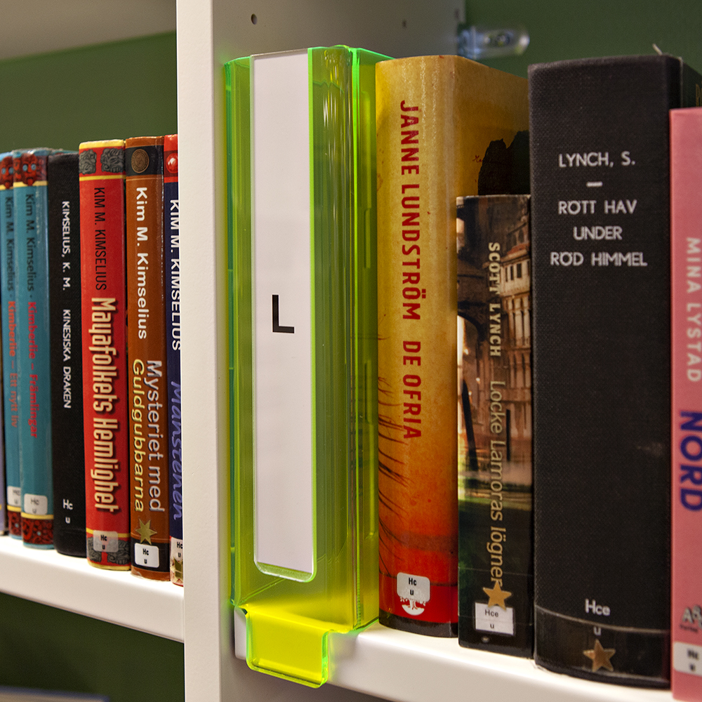 Etikettebeskyttelse i klar akryl er integreret i skillestøtten.