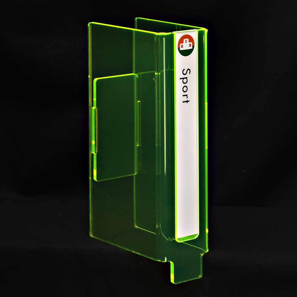 Hyldemærkning i kraftig fluorescerende akryl med høj detaljefinish.