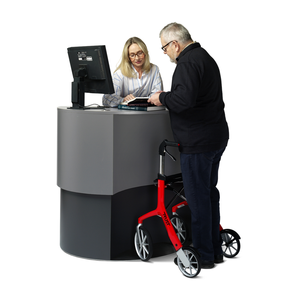 Perfekt som informationsskranke og arbejdsstation til større biblioteker.
