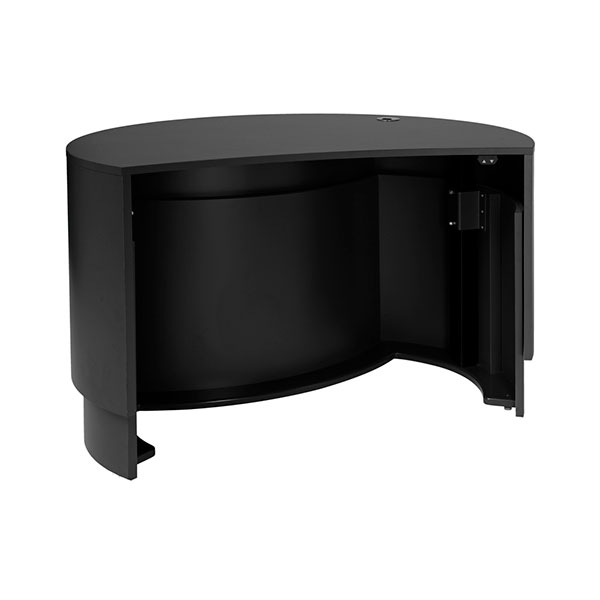 Skranken har kabelgennemføring i bordpladen og kan desuden udstyres med RFID-læser under bordet.
