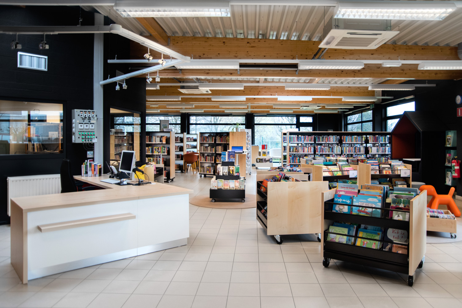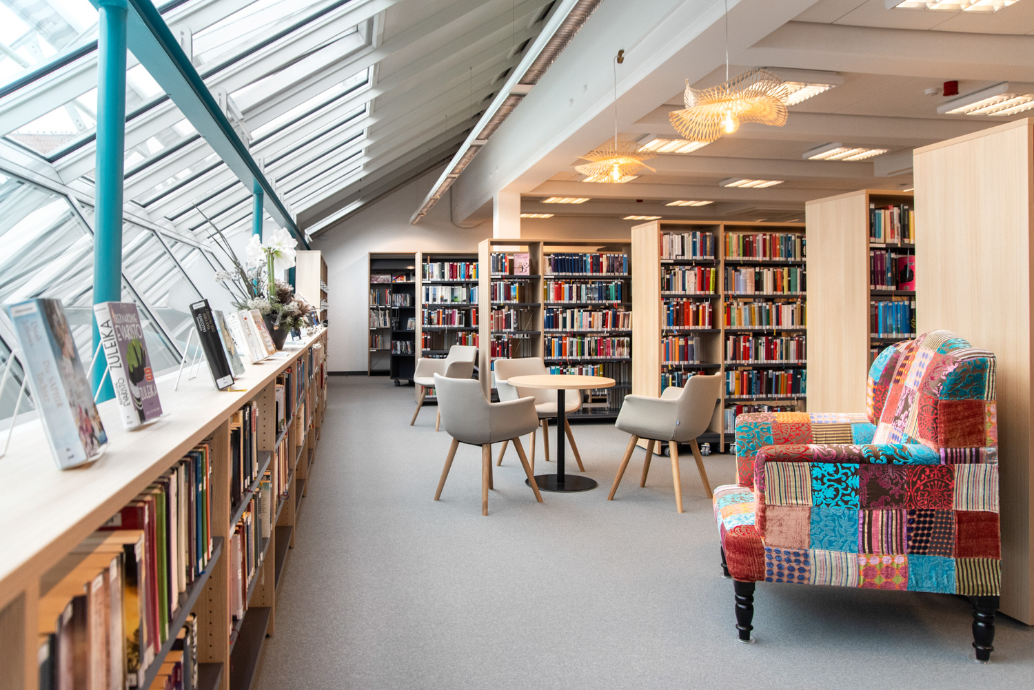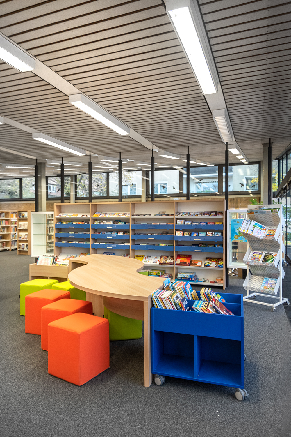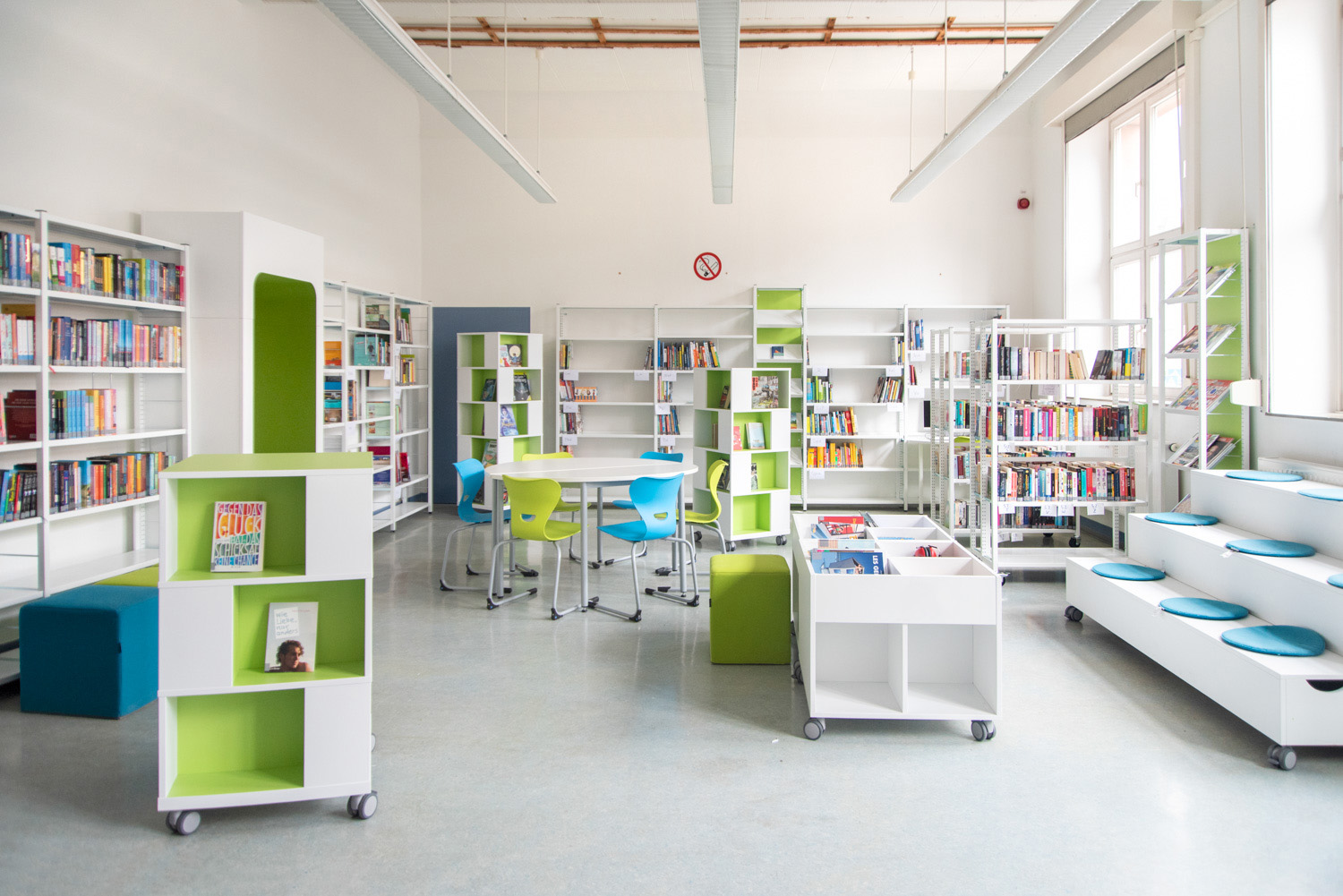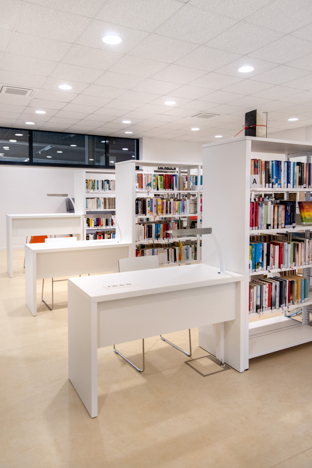Bordene kan bruges til at lave spændende og funktionelle høje og lave arbejdsmiljøer i biblioteket.