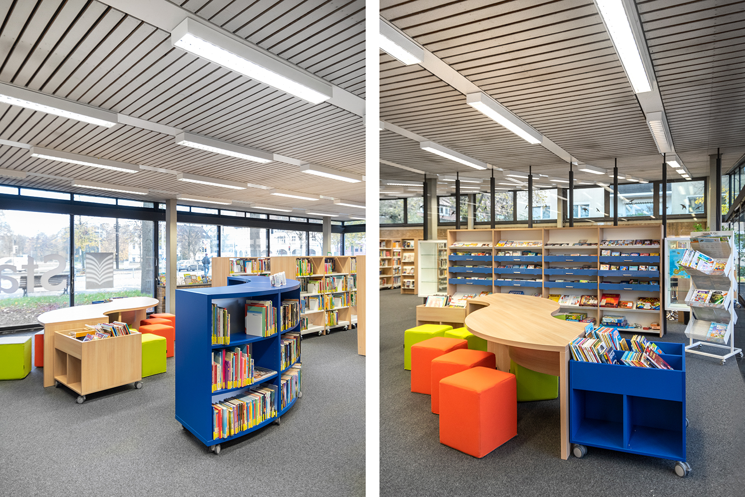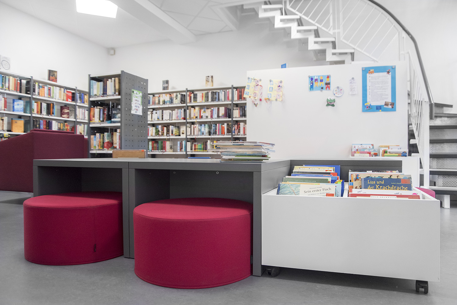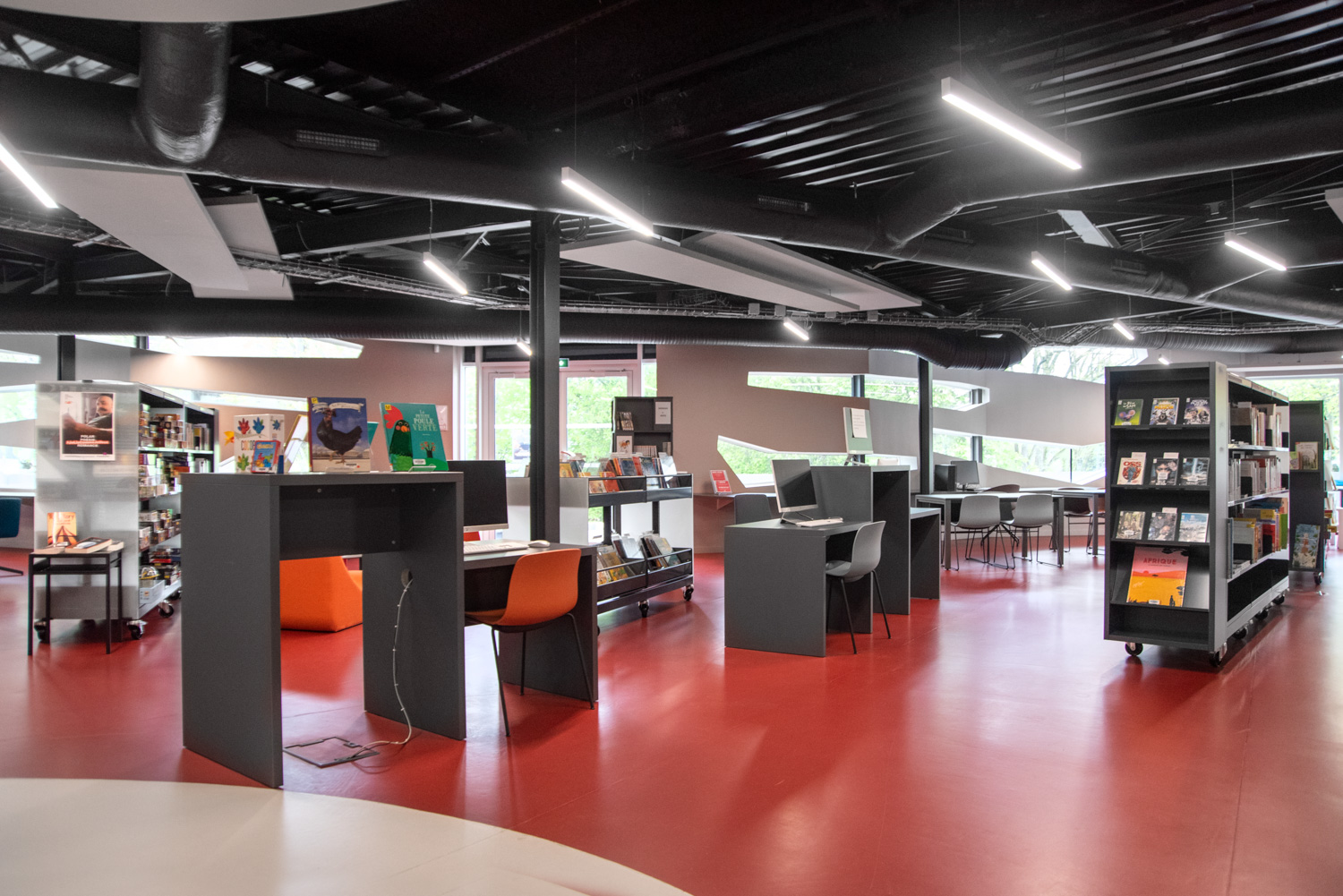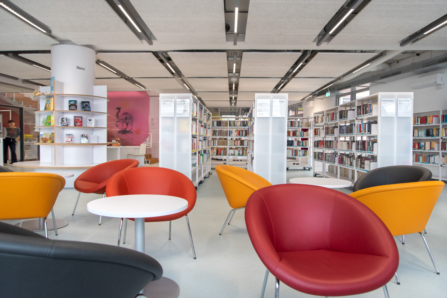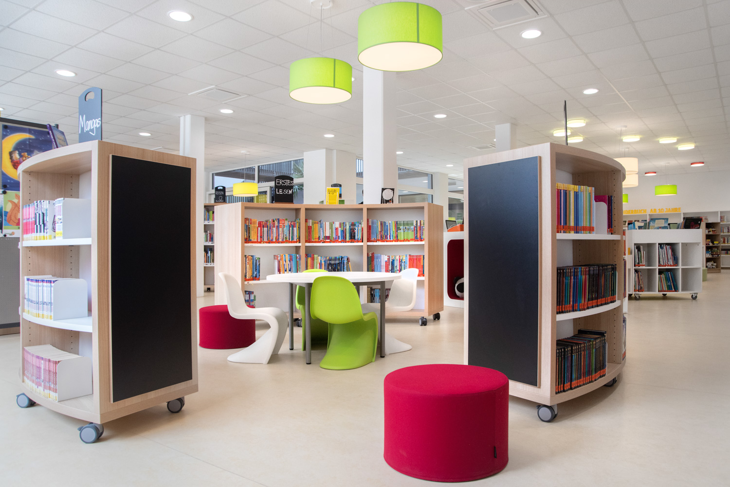Bordene kan bruges til at lave spændende og funktionelle høje og lave arbejdsmiljøer i biblioteket.