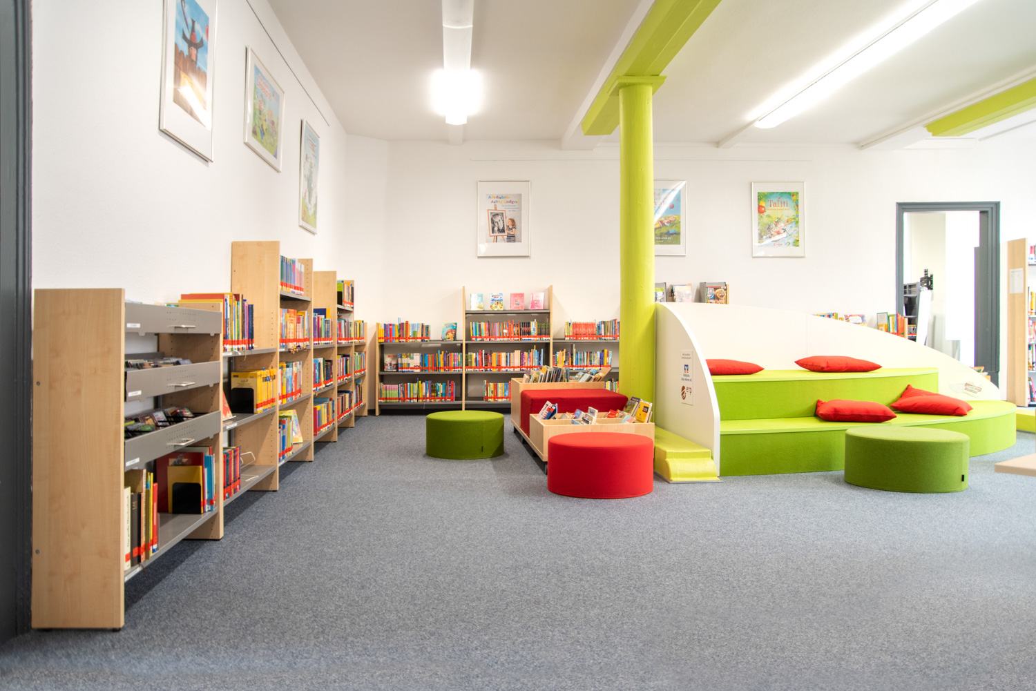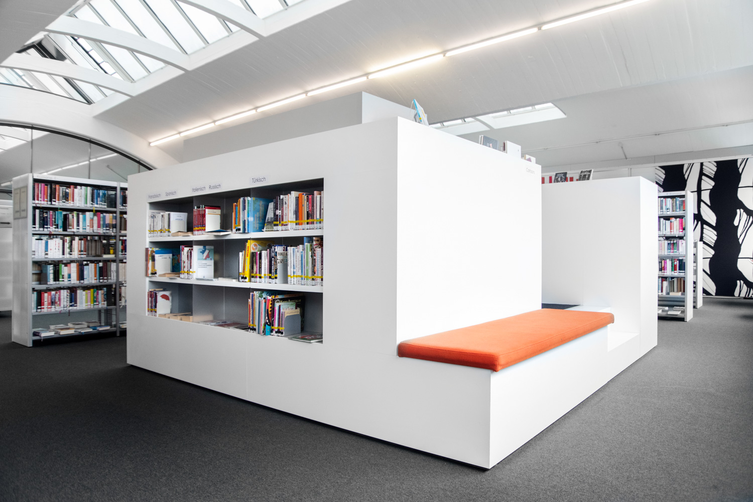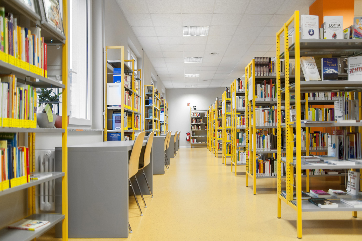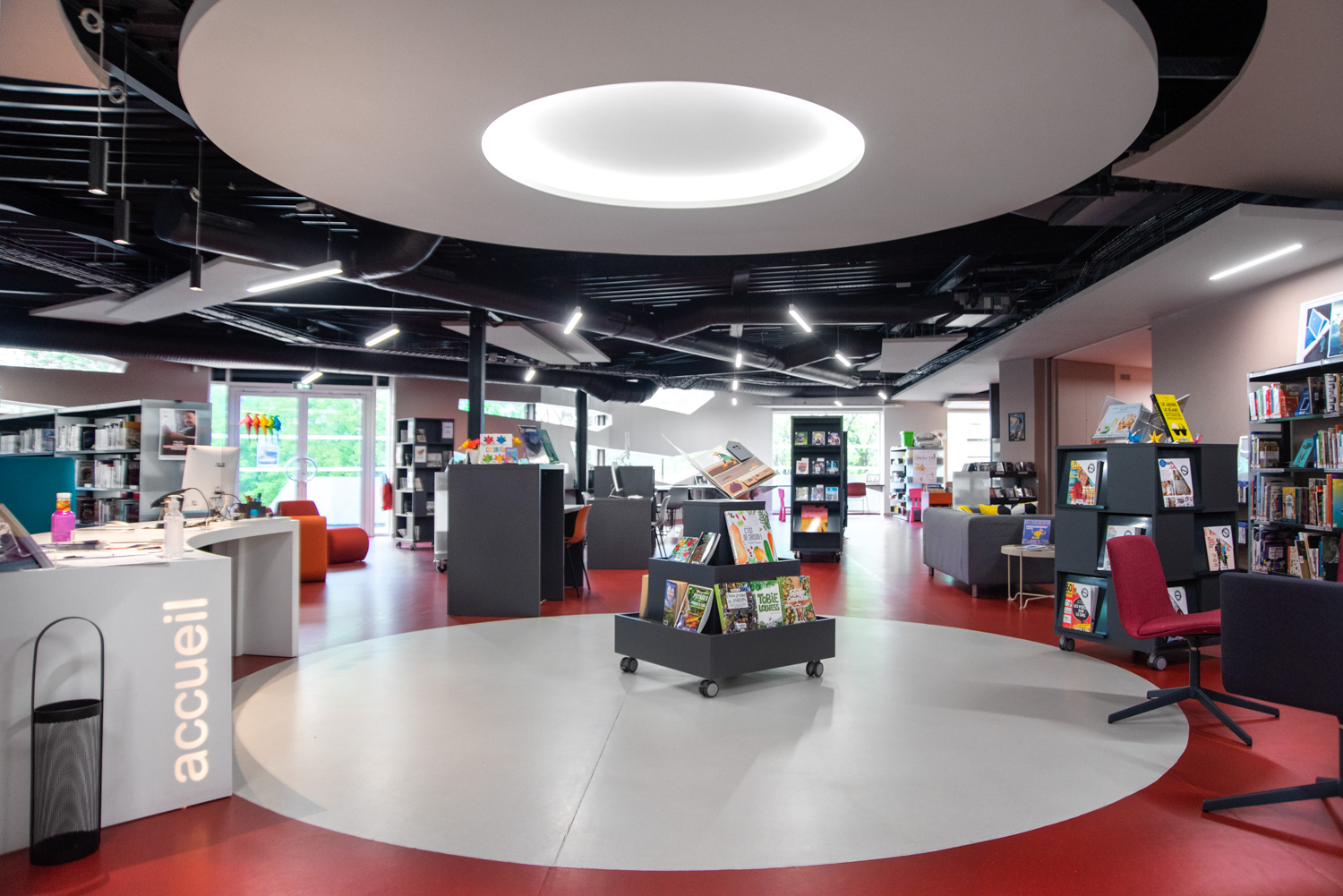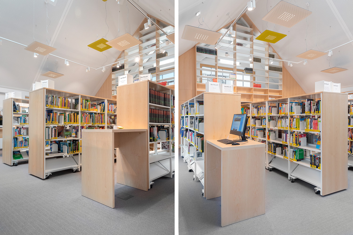 Bordene kan bruges til at lave spændende og funktionelle høje og lave arbejdsmiljøer i biblioteket.