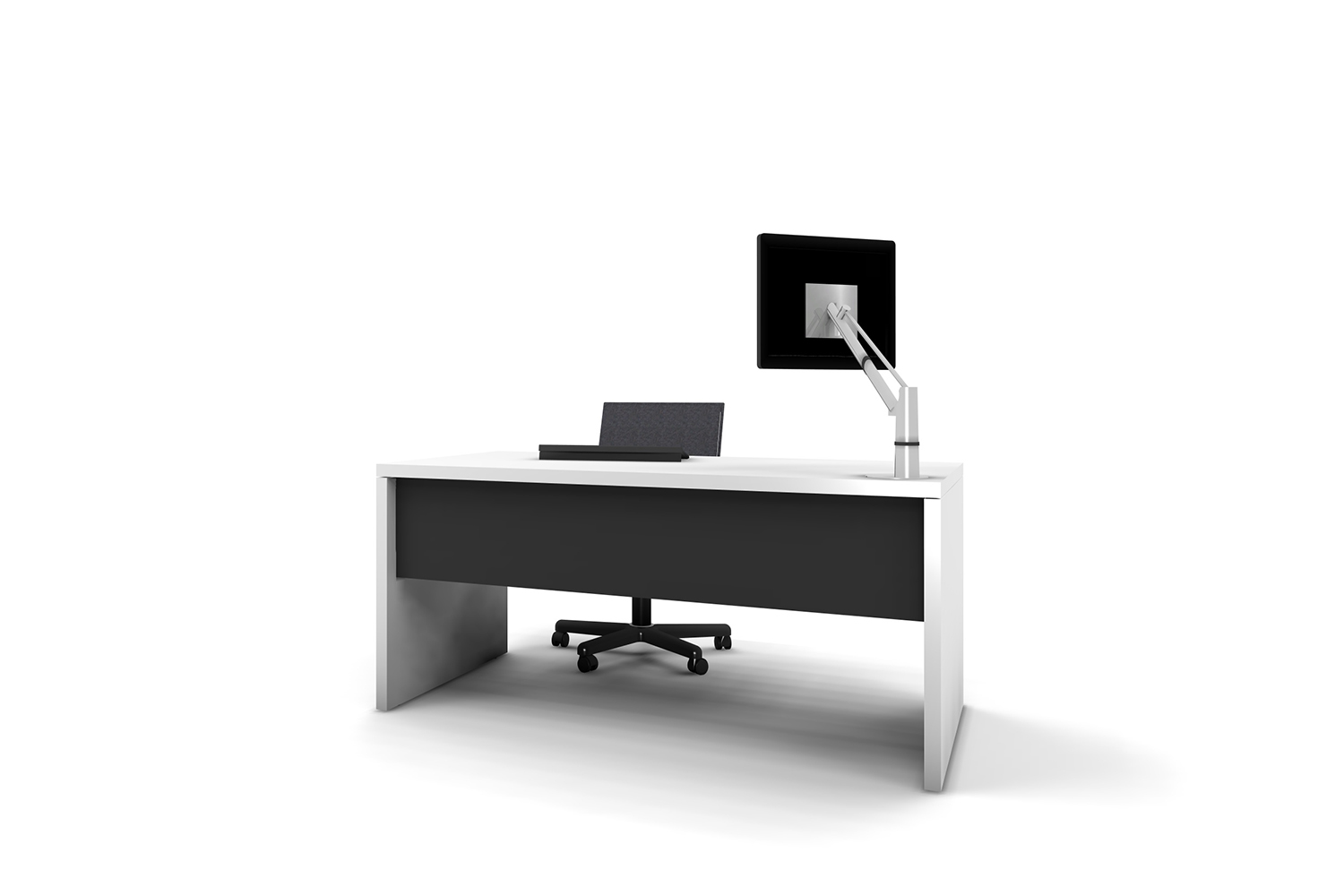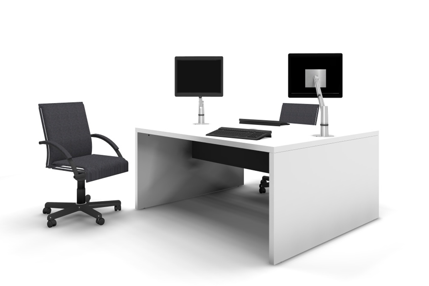 Duo: et rektangulært bord med frontpanel placeret I midten, så bordet kan bruges fra begge sider