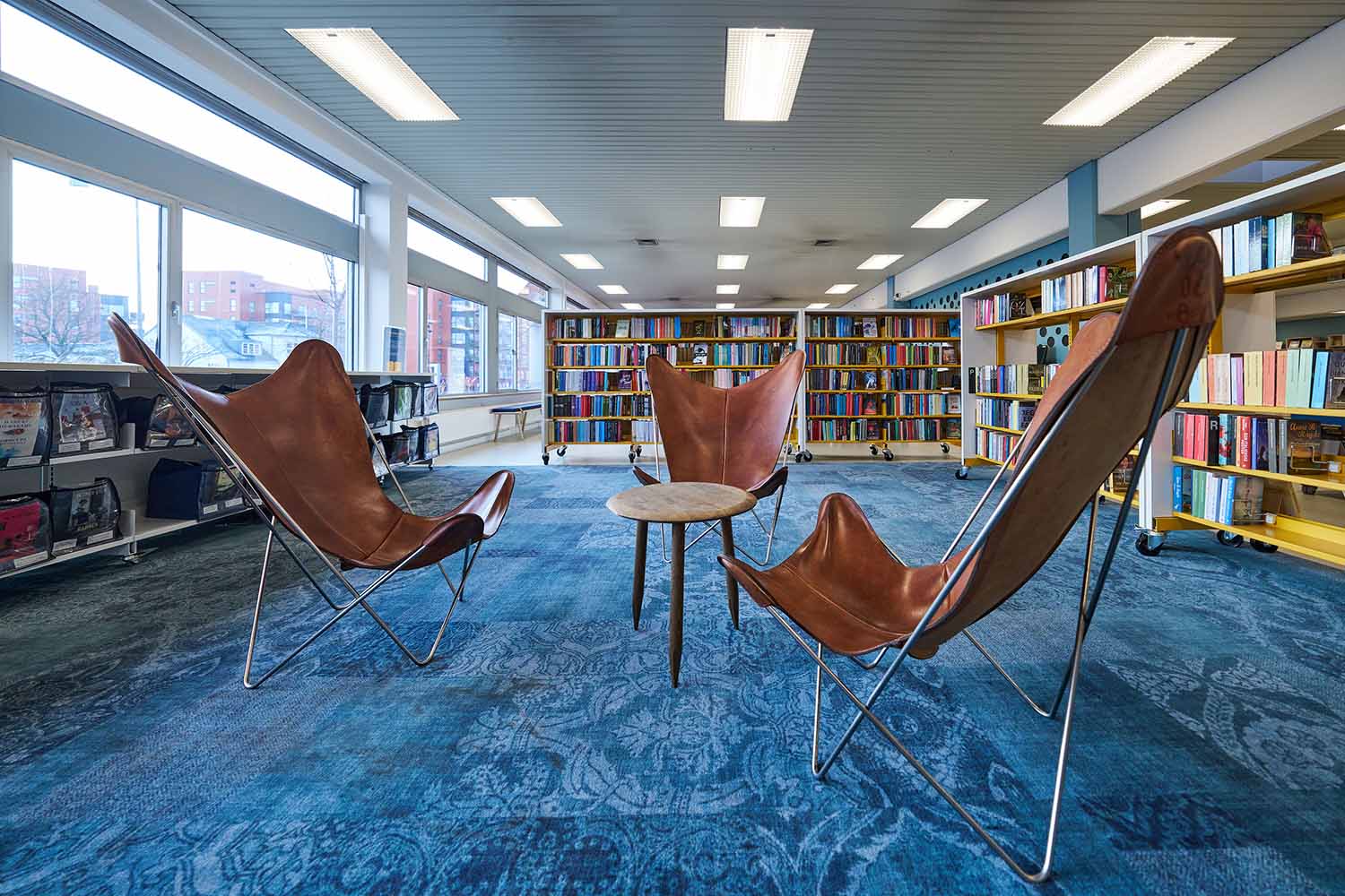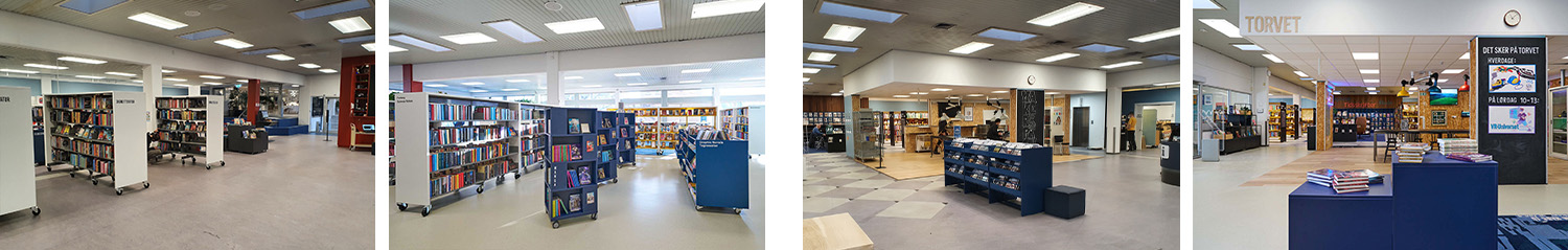 Reoler blevet ombygget i mindre sektioner med hjul, hvilket gør biblioteket fleksibelt og let at ommøblere ved arrangementer og skiftende behov.