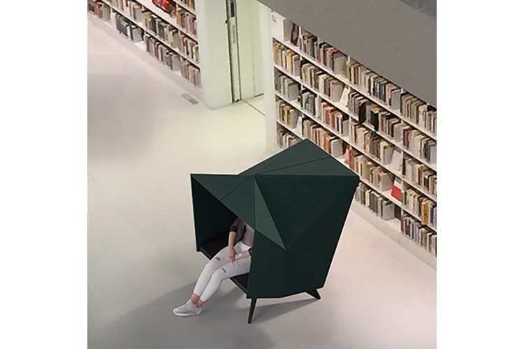 Samtidig er hulen et lyddæmpende møbel til biblioteksrummet.