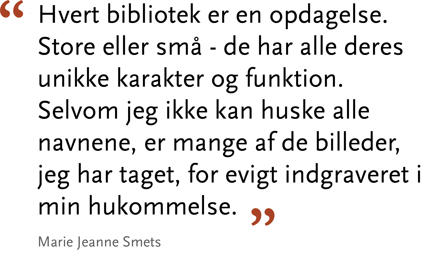 Med over 500 fotoprojekter for Lammhults Biblioteksdesign og øvrige selskaber har Marie Jeanne Smets dokumenteret fantastiske biblioteker, som vil leve videre - nu og i fremtiden.