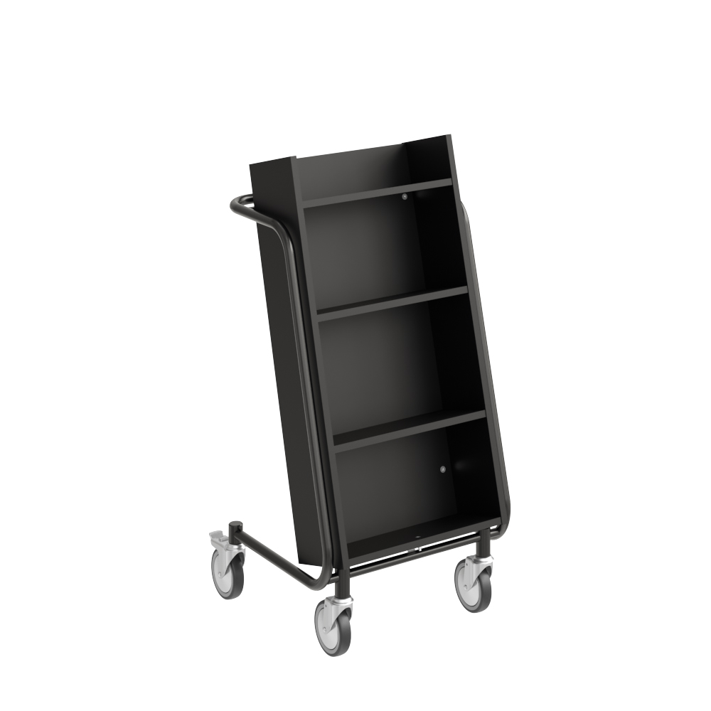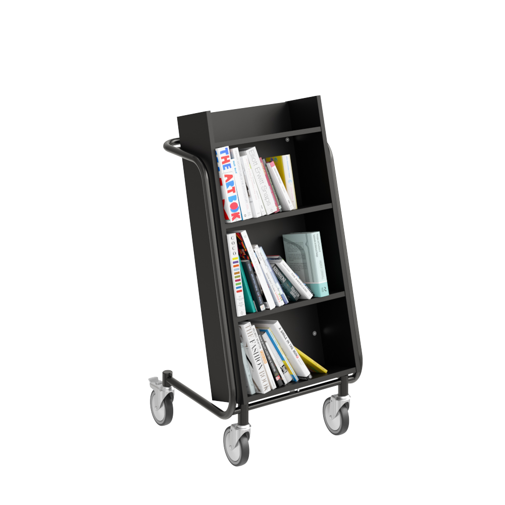 Bogvognens hældning sikrer stabil opbevaring og giver et godt overblik over de bøger, du skal håndtere.