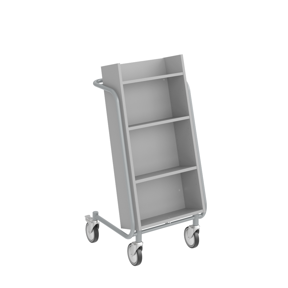 Bogvognens hældning sikrer stabil opbevaring og giver et godt overblik over de bøger, du skal håndtere.