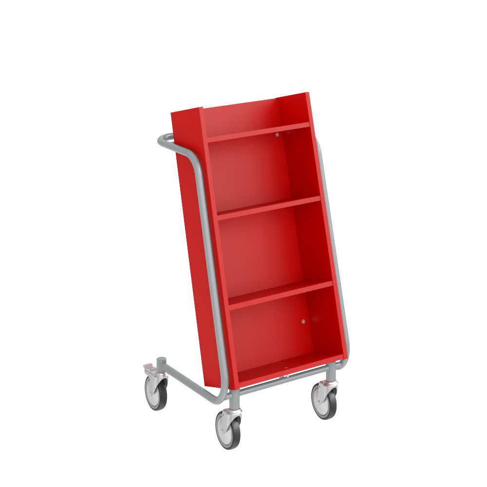 Bogvognens hældning sikrer stabil opbevaring og giver et godt overblik over de bøger, du skal håndtere.