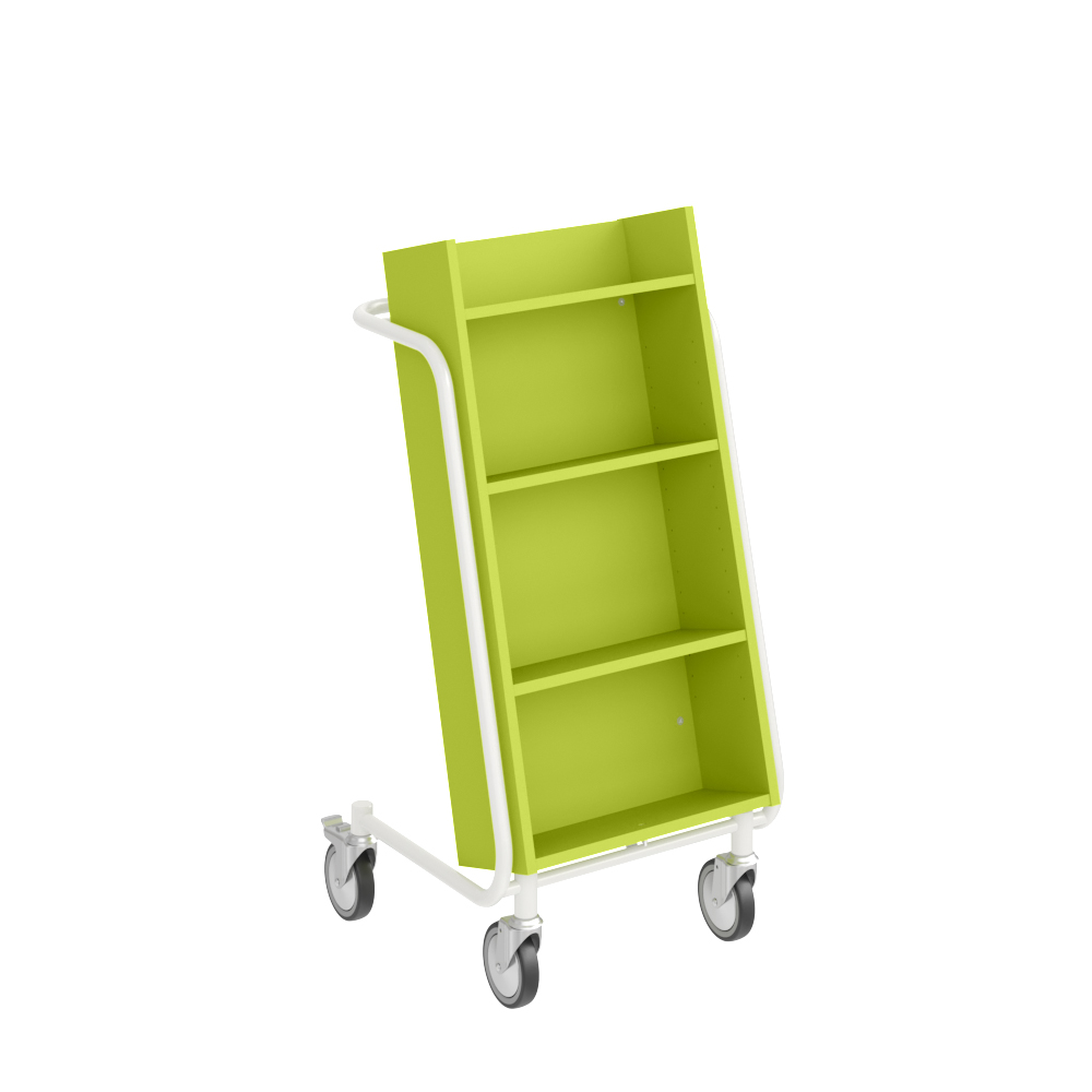 Bogvognens hældning sikrer stabil opbevaring og giver et godt overblik over de bøger, du skal håndtere.