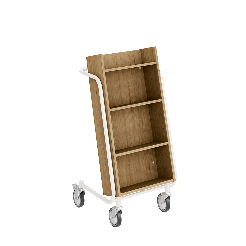 Bogvognens hældning sikrer stabil opbevaring og giver et godt overblik over de bøger, du skal håndtere.