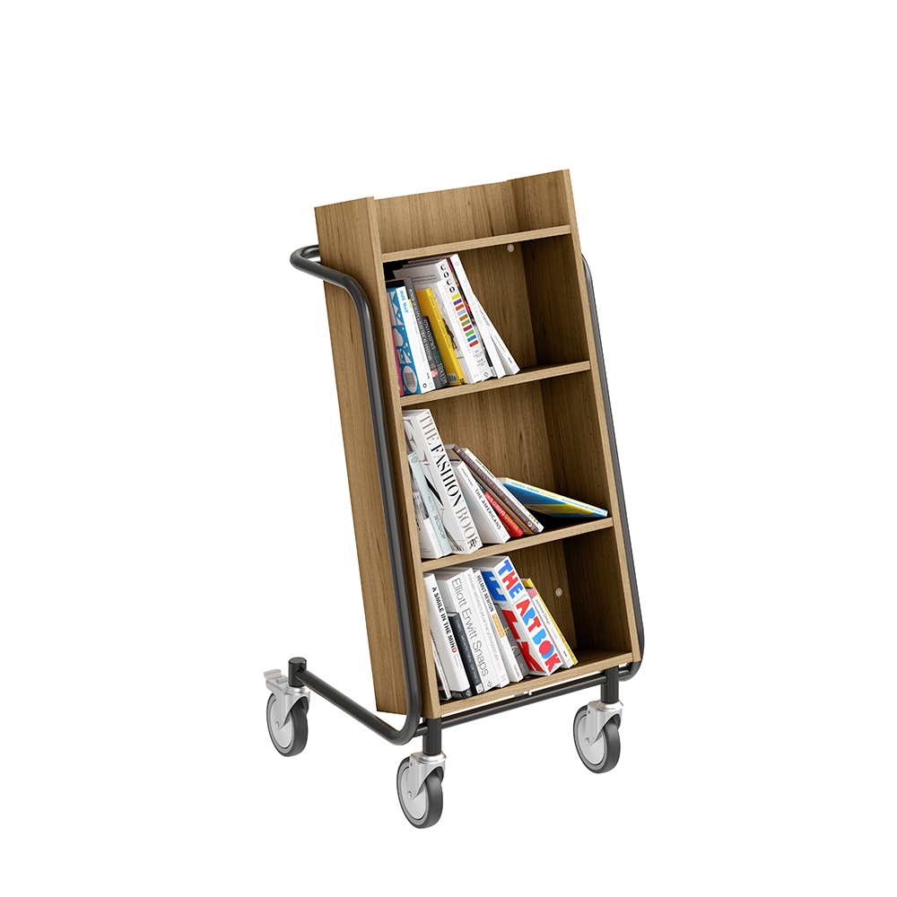 Bogvognens hældning sikrer stabil opbevaring og giver et godt overblik over de bøger, du skal håndtere.