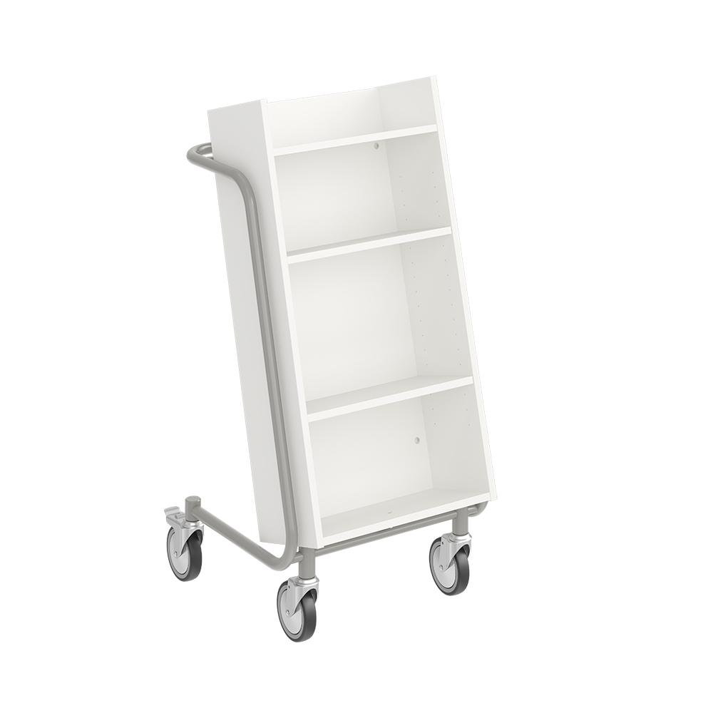 Bogvognens hældning sikrer stabil opbevaring og giver et godt overblik over de bøger, du skal håndtere.