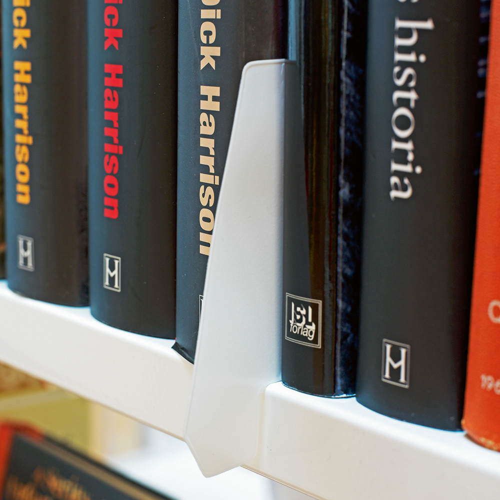 Selvbetjeningssystem til mindre biblioteker, hvor lånemærket placeres på den udlånte bogs plads. Påsvejset og transparent plast til f.eks. låneblanket.