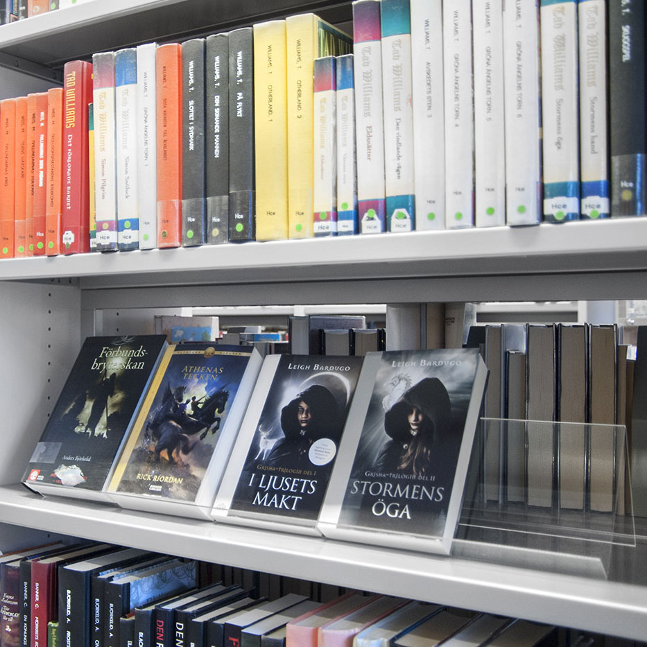 Akryldisplays for alle størrelser bøger, AV-medier, information og børnelitteratur.