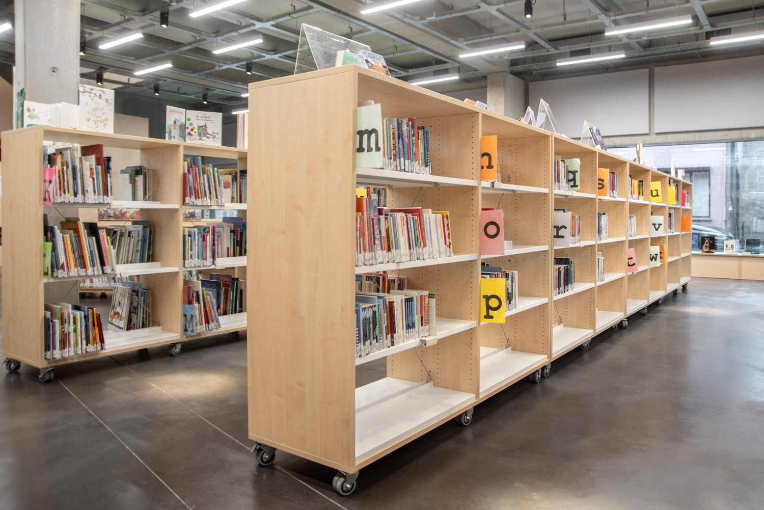 - med et stort udvalg af hylder (stål/træ/, plan/skrå, bagkant/hængende bogstøtte)