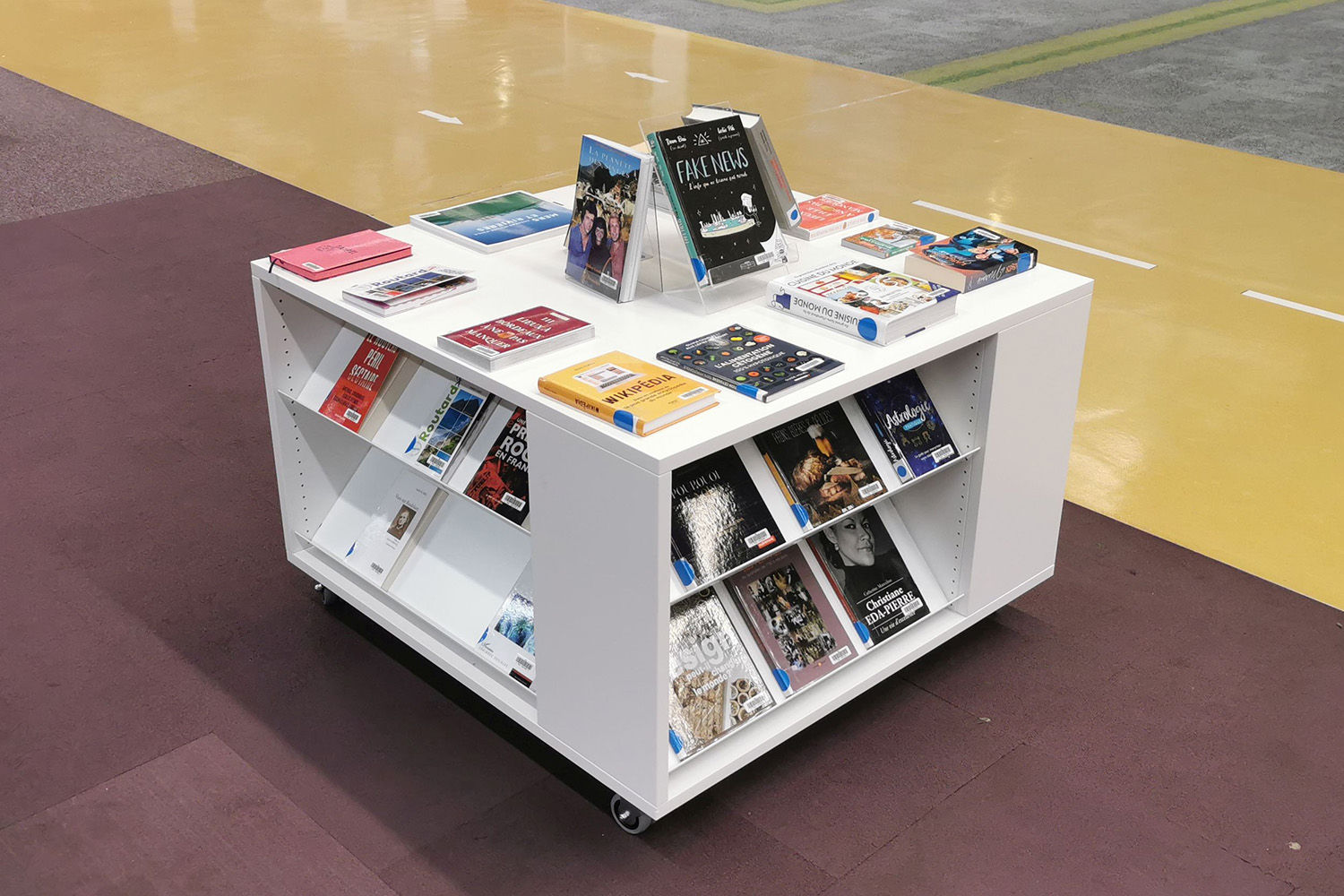 Brug hylderne til maksimal opbevaring af store mængder bøger eller brug et udvalg af funktioner til at skabe display områder. Overfladen kan også have mange forskellige funktioner, den kan f.eks. bruges som arbejdsbord eller som legeområde. Eller hvorfor ikke bruge den som en del af et temaområde og fange bibliotekets brugeres opmærksomhed!