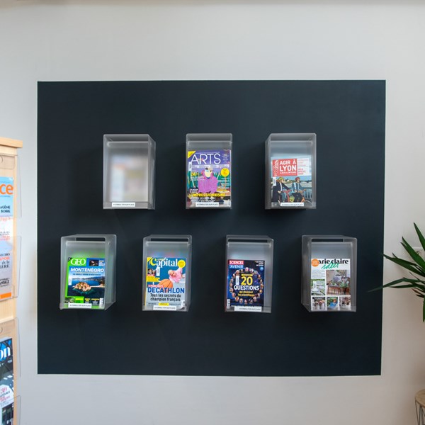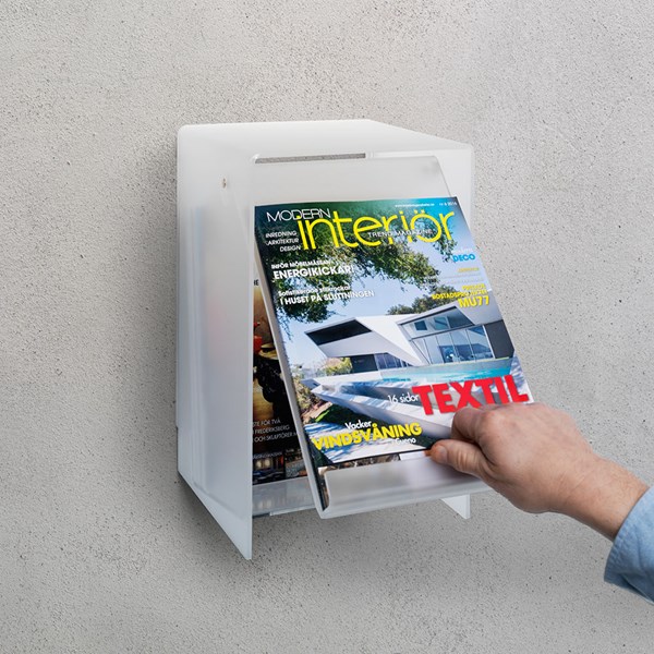 Magasinbokse i akryl til udstilling og opbevaring af magasiner.
