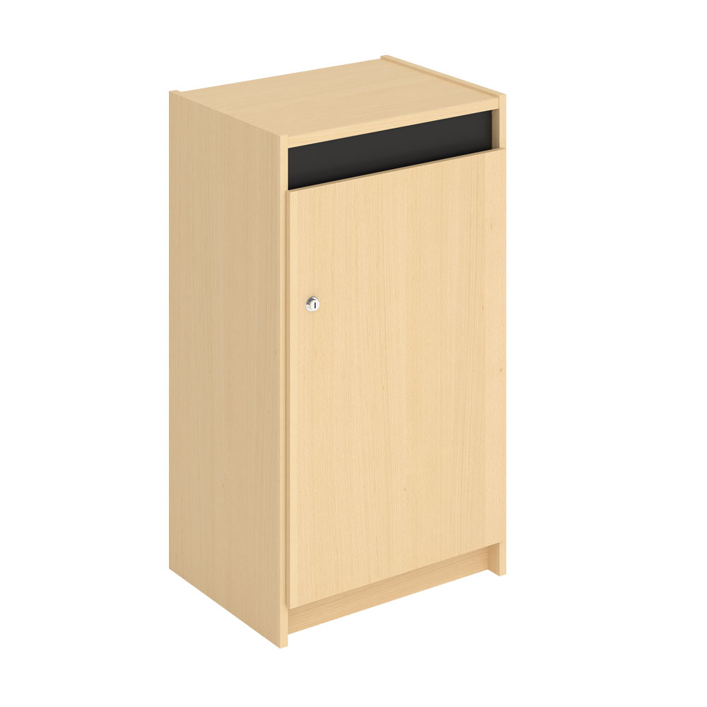 Funktionelt og låsbart afleveringsskab med 40 mm tyk indvendig bundplade af koldskum til beskyttelse af bøgerne.