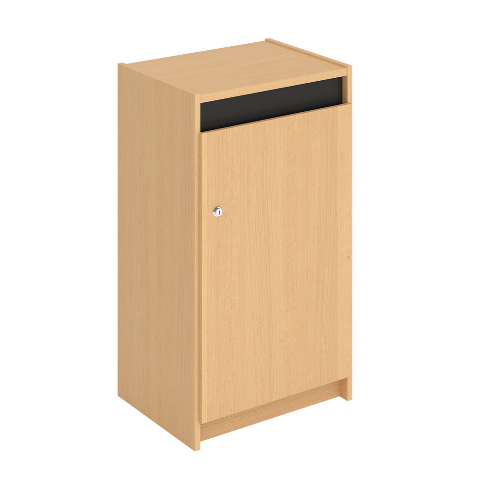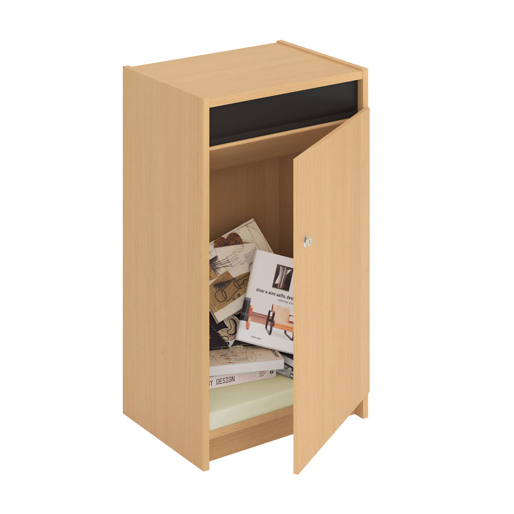 Funktionelt og låsbart afleveringsskab med 40 mm tyk indvendig bundplade af koldskum til beskyttelse af bøgerne.