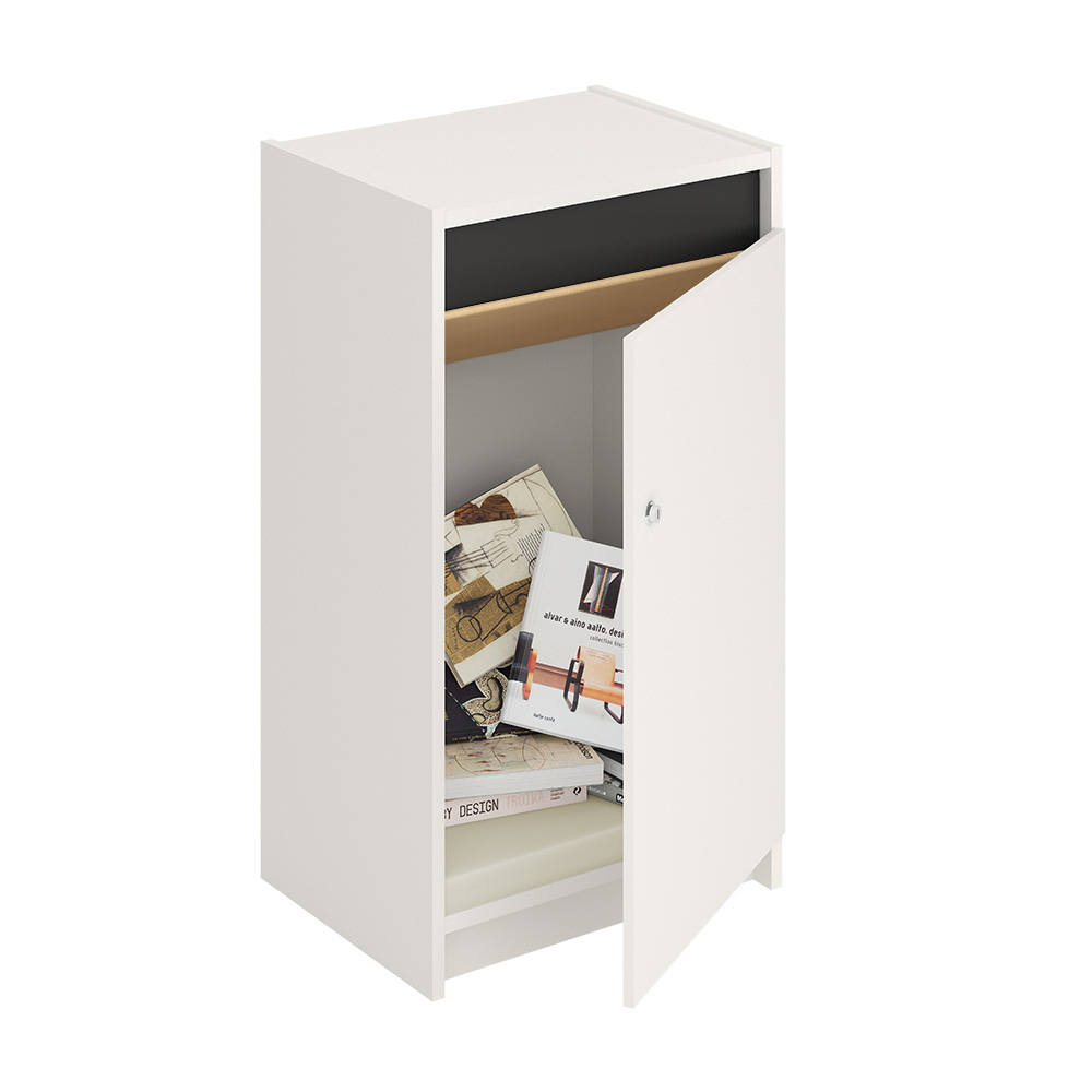 Funktionelt og låsbart afleveringsskab med 40 mm tyk indvendig bundplade af koldskum til beskyttelse af bøgerne.