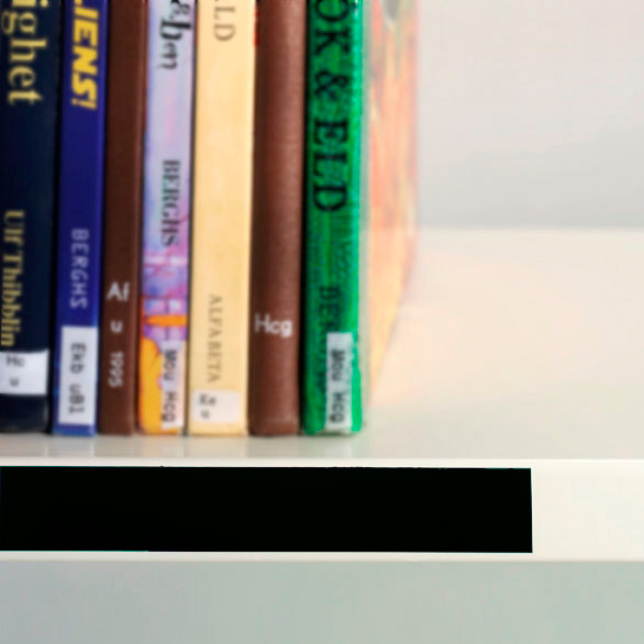 Tydelig, letanvendelig og praktisk mærkning til f.eks. hylder, gavle eller bogstøtte med forkant i stål.
