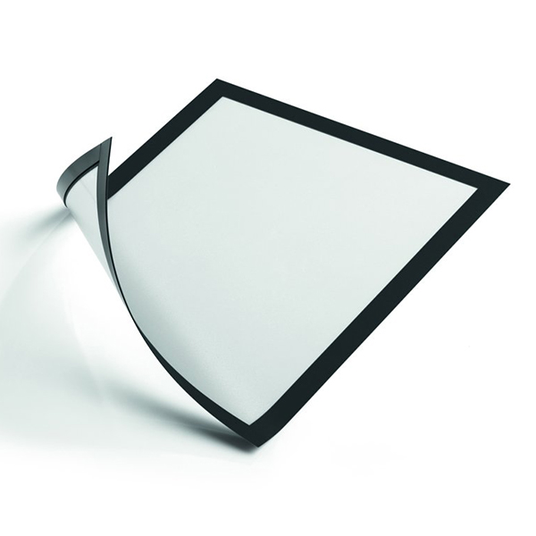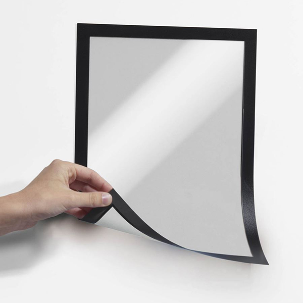 De magnetiske rammer (Duraframe® Magnetic) hæfter magnetisk på alle magnetiske overflader som f.eks. whiteboardtavler, metal hyldegavle, o.s.v.