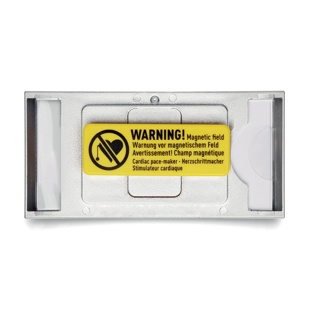 Praktisk navneskilt med magnetisk lukning, som er skånsom mod tøjet.