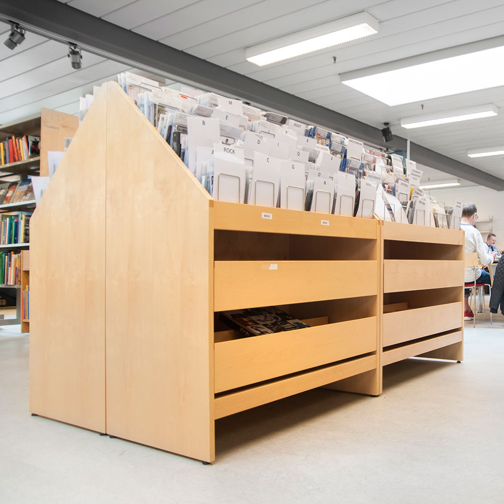 AV-møbel til udstilling og opbevaring af medier i flere niveauer såsom musik, film og lydbøger.