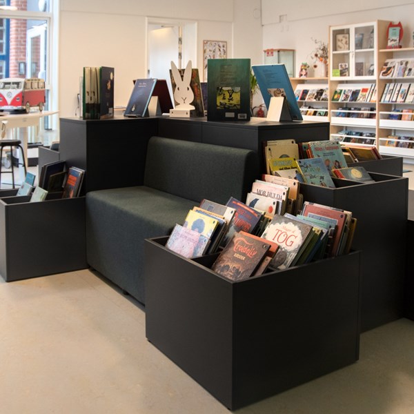Velegnet til at skabe små og store øer i biblioteket. Den simple form passer godt ind i de fleste miljøer og sætter fokus på bøgerne.