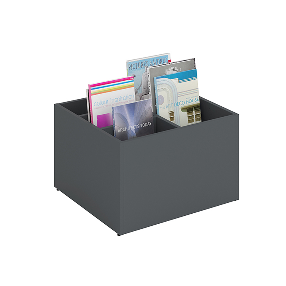 Velegnet til at skabe små og store øer i biblioteket. Den simple form passer godt ind i de fleste miljøer og sætter fokus på bøgerne.