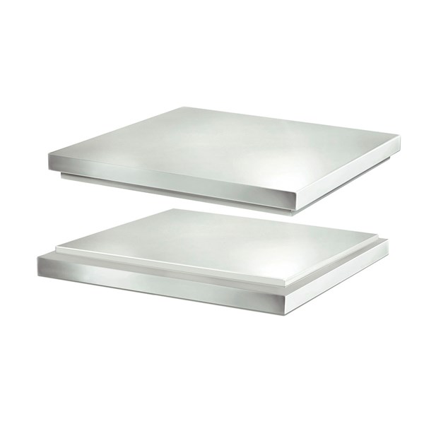 Tårn med 2 montrer består af 1 top og bund + 2 Cube moduler + enten 1 mellemlæg ELLER 1 udstillingsholder.