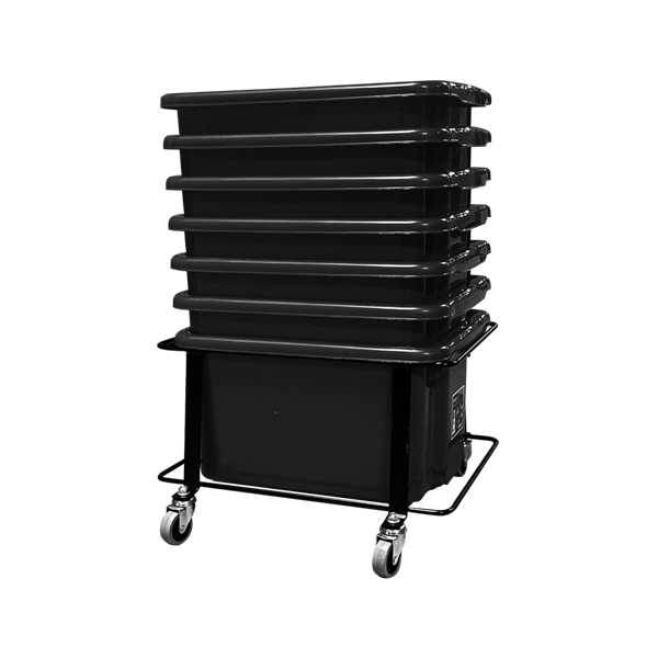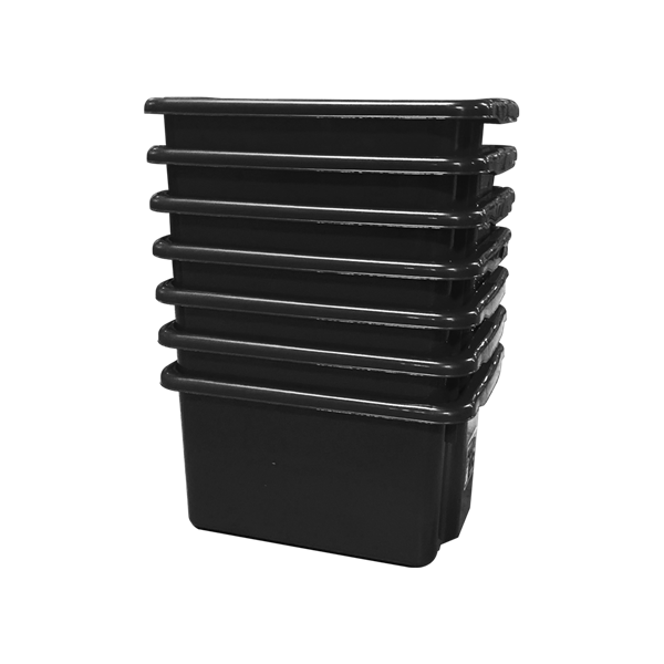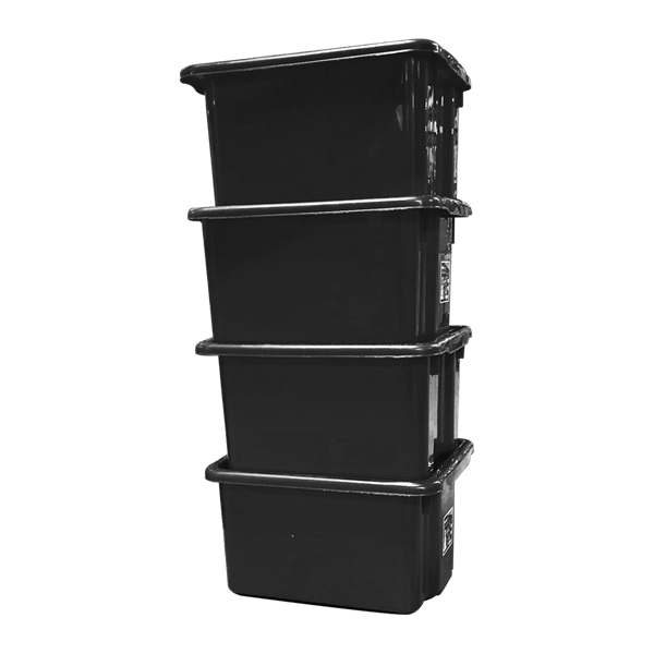Boksene er stabelbare og afhængig af, hvordan de vender, kan de stables indeni eller ovenpå hinanden.