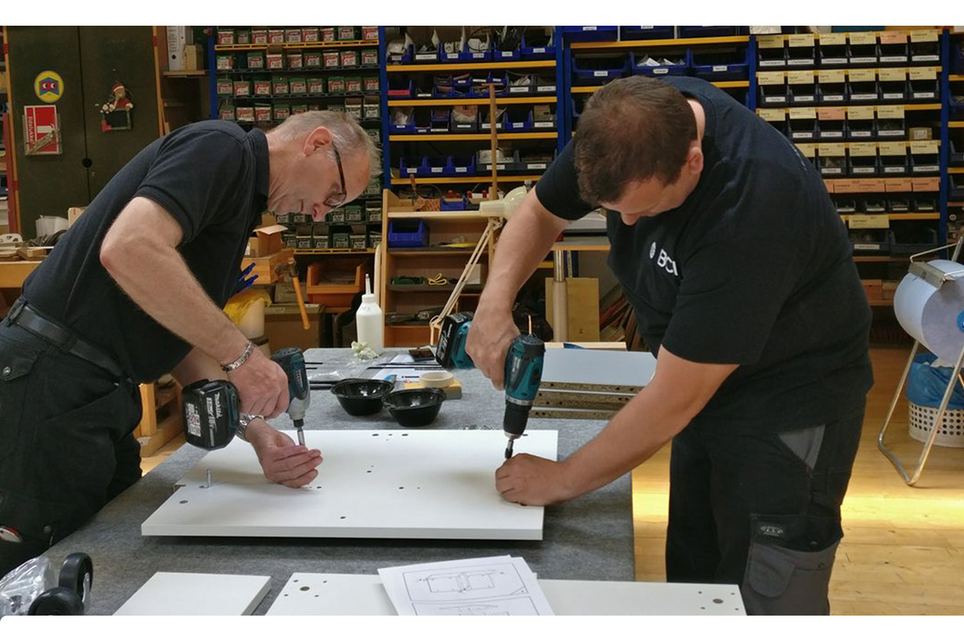 Carl Marius begyndte i virksomheden som 31-årig. Dengang havde vi egen produktion, og hans arbejde bestod primært i at samle stole og borde. Siden har både virksomheden og opgaverne udviklet sig markant. Gennem årene har Carl samlet og monteret bogvogne, reoler og en lang række specialløsninger til biblioteker i hele Norden. Han har rejst meget – særligt i Sverige – og været med til installationer på ikoniske projekter, blandt andet Dokk1 i Aarhus.