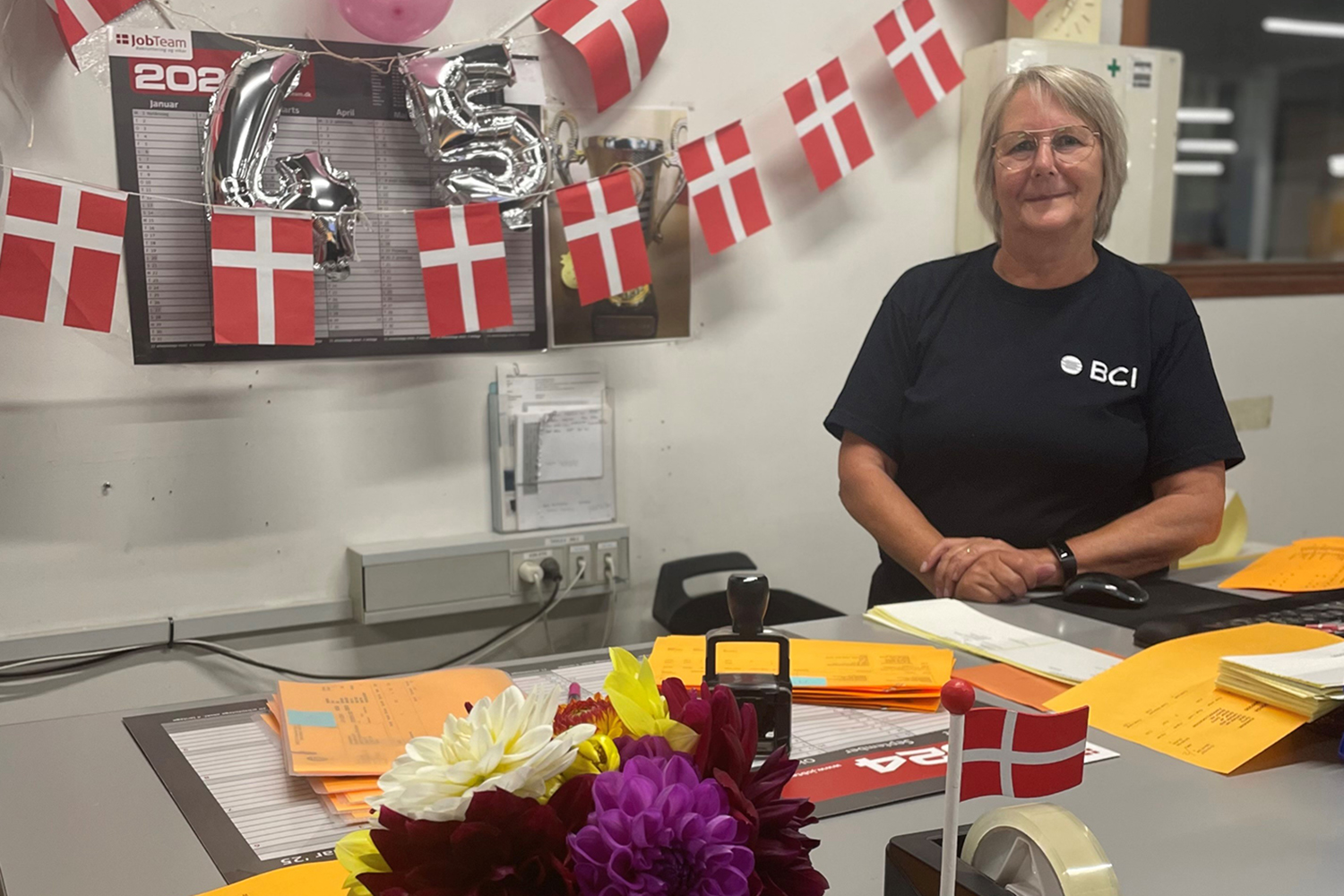 Britta Andreasen, Holsted, har den 24. august 45-års jubilæum hos Lammhults Biblioteksdesign A/S.