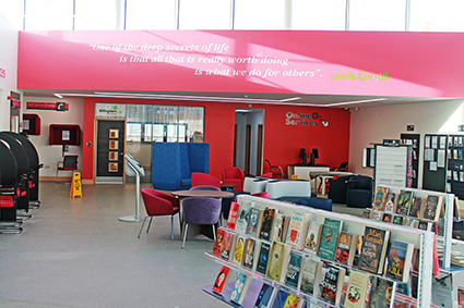 Det supermoderne bibliotek til £2,7 mio er bygget, hvor byen tidligere havde kunstgalleri og kommunekontor