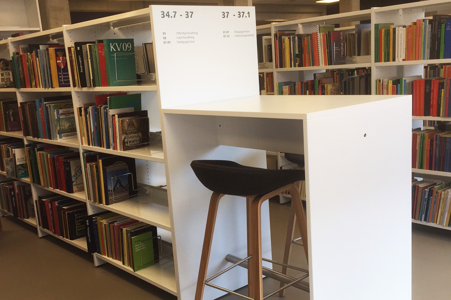 Indretningsarkitekt Lykke Jørgin fra Lammhults Biblioteksdesign A/S har indrettet den nye uddannelseszone i samarbejde med Move Arkitekter, der har stået for materialevalg. Lammhults Biblioteksdesign har leveret inventar, heriblandt Frontline reoler, Maria udstillingspodier, borde, stole og en række specialtegnede møbler.