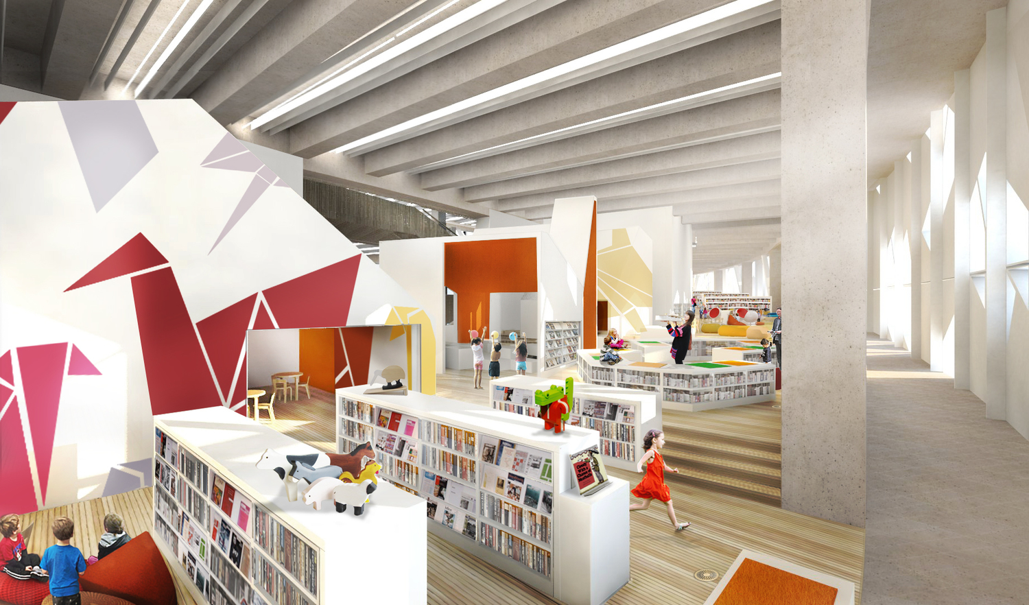 Med et areal på 22.000 m2 fordelt på 5 etager, kommer biblioteket til at indeholde 7.000 hyldemeter med opbevaring og udstilling af bøger og andre media. Slimline reolsystem bliver tilpasset for at imødekomme ønsker fra både arkitekter og biblioteket. LED-lys bliver installeret på hver hylde med næsten usynligt armatur og ledningsføring.