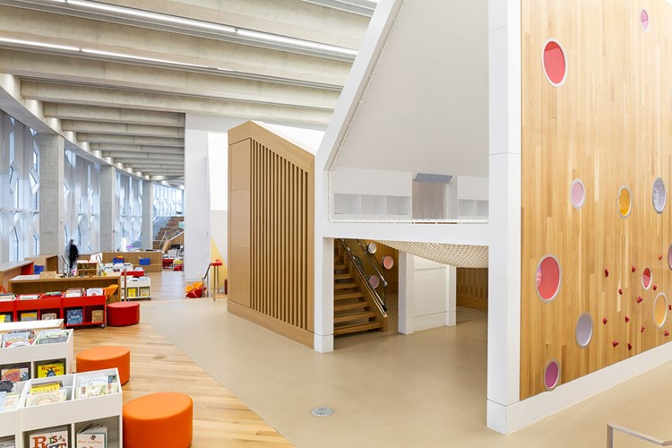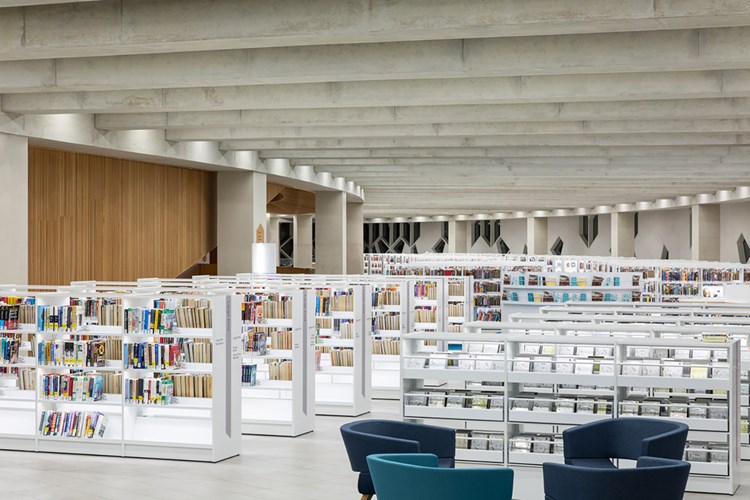 Med et areal på 22.000 m2 er dette ikoniske rum det oplagte sted at læse, studere og socialisere. Det nye bibliotek har plads til 450.000 titler og imødekommer forskellige biblioteksbehov med masser af læse- og læringsmiljøer, møderum, en cafe, en koncertsal og et udendørsområde.