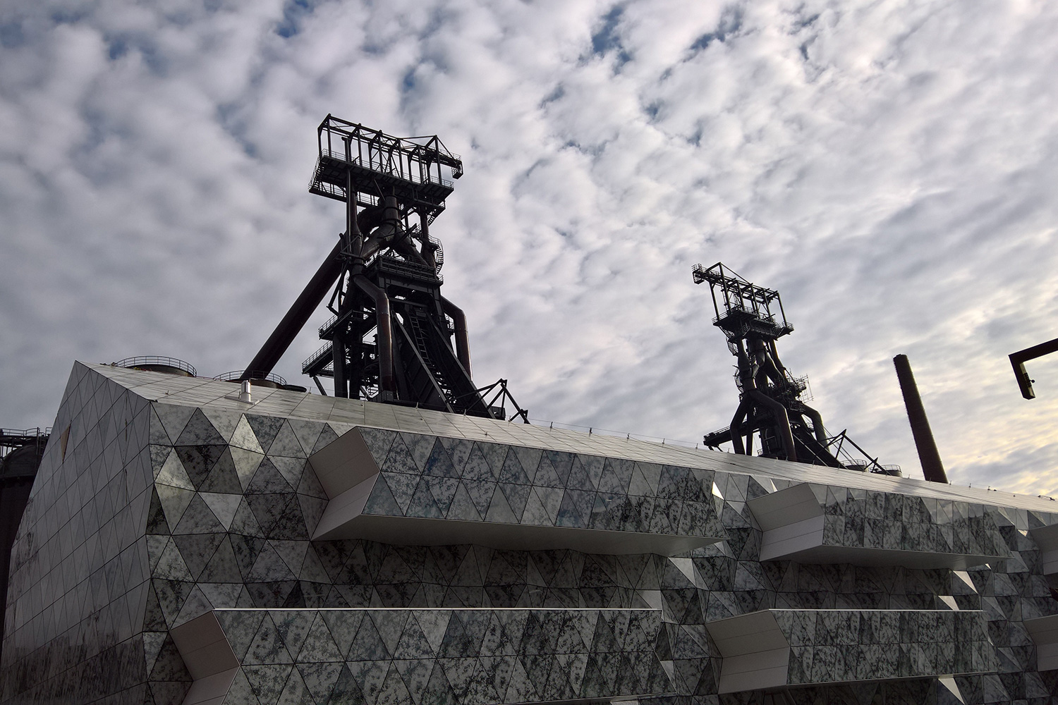 Biblioteket indeholder 5.000 belyste hylder fordelt på 4 etager. Biblioteket er designet som et samarbejde mellem VALENTINY hvp architects, Ligne et Couleur konsulentfirma, Frankrig og Le Fonds Belval, Luxembourg.