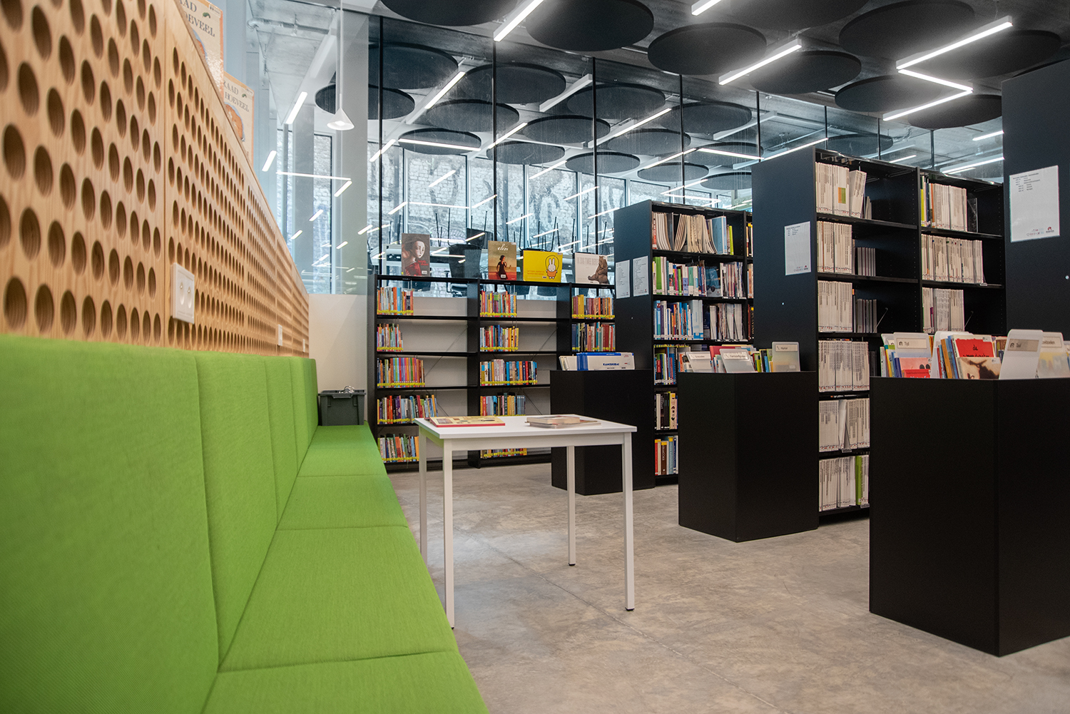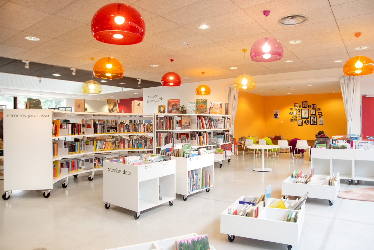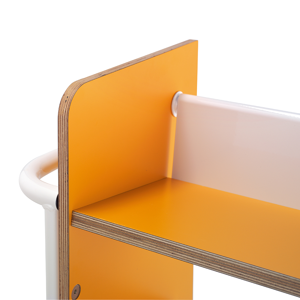 Denne bogvogn kan bruges som et mini reolsystem, der kan køres rundt i biblioteket efter behov.